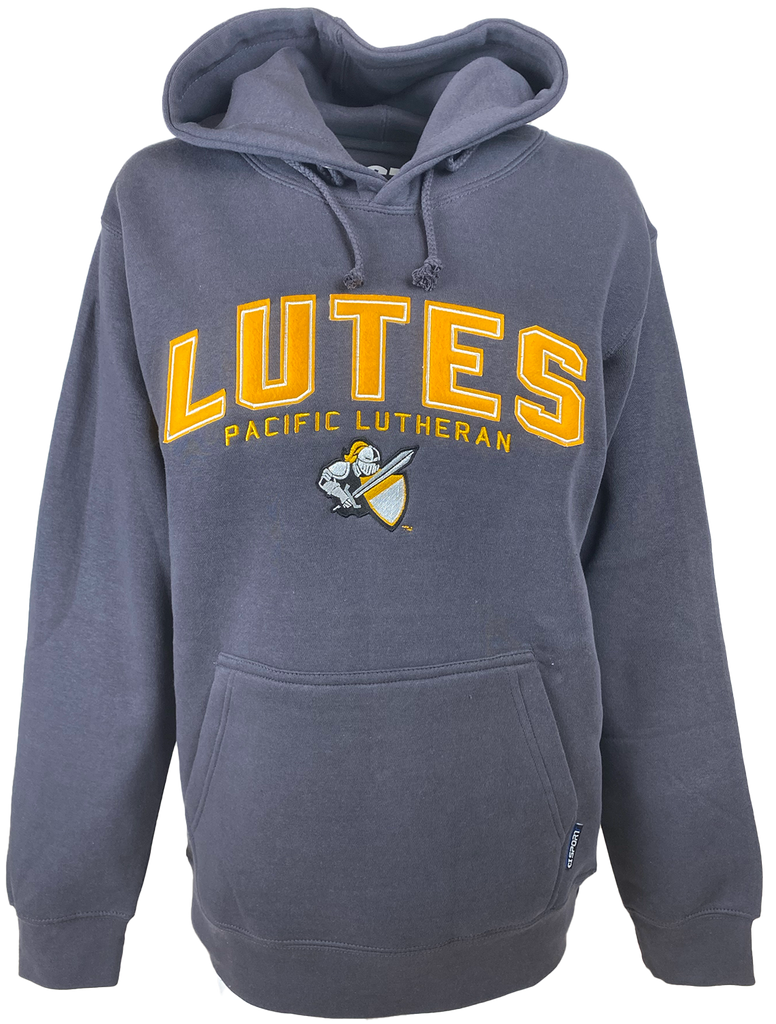CI Sport Slate Hoodie with Felted Lutes and embroidered knight and Pacific Lutheran