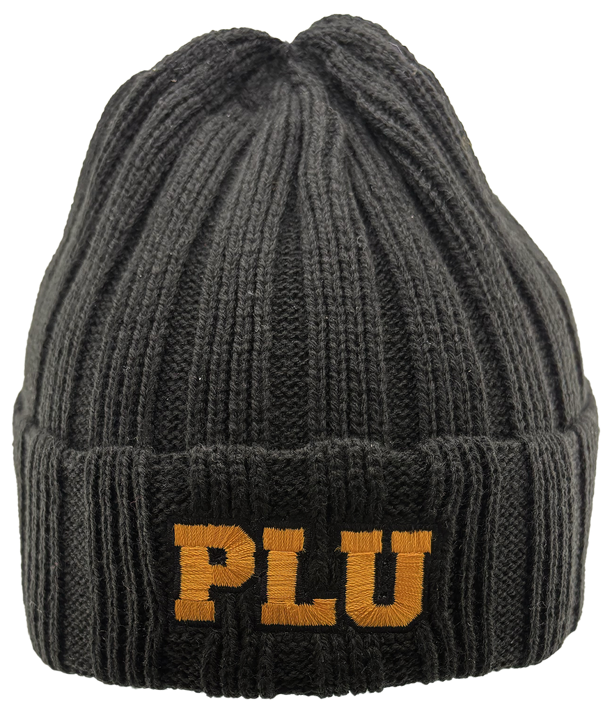 LOGOFIT Watchman shallow fit drop-needle knit cuff hat embroidered with PLU in Gold