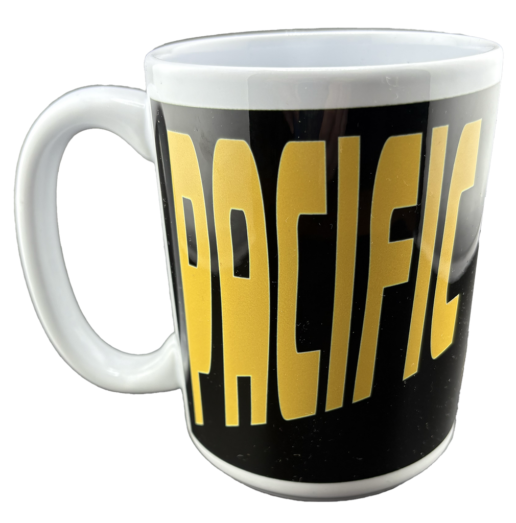 15 oz El Grande Colormax mug with a white base sublimated with Black and Gold Pacific Lutheran Lutes and Interlock PLU